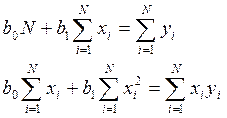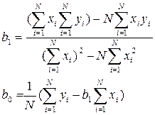 Розв'язок цієї системи відносно bо та b1 здійснюється за допомогою правил Крамера чи Дулітла, в результаті чого отримаємо наступні формули: