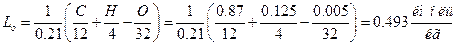 где С, Н, О – массовые доли соответственно углерода, водорода и кислорода в элементарном составе топлива; 0,21 – объемное содержание воздуха в кг воздуха.