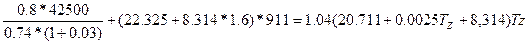 μCVZ = (20,097+0,921/ά)+(1,549+1,376/ά). 10-3 Tz = = (20.097+0.921/1.5)+(1.549+1.376/1.5) . 10-3 Tz = =20.711+0.0025Tz, кДж/кмоль0К