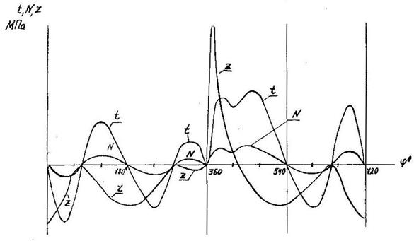 4.Определяются силы инерции возвратно-поступательно движущихся масс Рj = -mj*j = -4.74*3138 = -14874 H