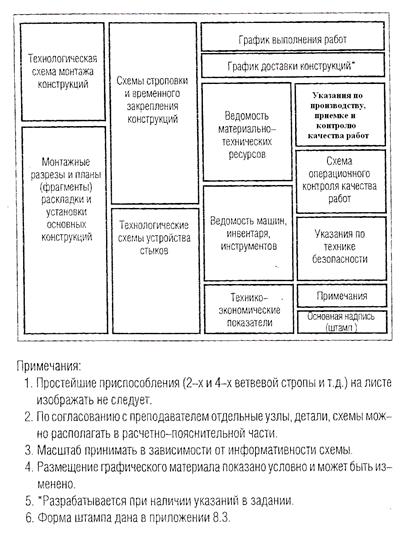 Приложение 8.1 Примерная схема компановки листа комплексной технологической карты на монтаж одноэтажного промздания на листе формата А-