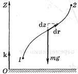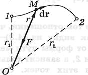 де Перемістимо частку М, на яку діє ця сила, по довільному шляху з точки 1 у точку 2. Елементарна робота на цьому шляху визначається з виразу: