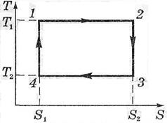 Теоретичні відомості. Карно розглянув тепловий двигун, який складається з нагрівача з температурою Т1, холодильника з температурою Т2 і робочого тіла