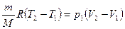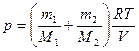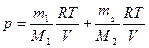 Задача 3. У судині обсягом V знаходиться суміш m 1 газу з молярною масою M 1 і m 2 гази з молярною масою M 2 при температурі T. Визначити тиск p і молярну масу суміші газів M. Універсальна газова постійна R = 8,31 Дж/(моль·К).