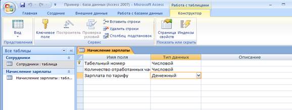 4. Заполним таблицу данными. Табельный номер перенесём из первой таблицы. Возможно использовать инструмент Мастер подстановок (для тех, кто знает Access).
