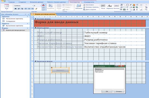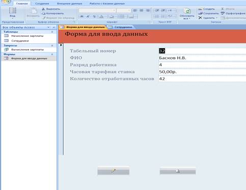 Из таблицы Начисление зарплаты добавим поле Количество отработанных часов. Далее следуя шагам Мастера выберем внешний вид формы: В один столбец, дизайн оформления, вводим имя формы: Форма для ввода данных.