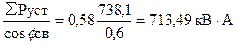 2.2 Расчетная мощность трансформаторной подстанции определяется по формуле: Sтр=Кс где Кс – коэффициент спроса; ∑ Руст – суммарная установленная мощность электроприемников кВт; cos φсв – условный средневзвешенный коэффициент мощность для группы электроприемников очистных и подготовительных забоев 0,6 согласно [7] стр. 110.