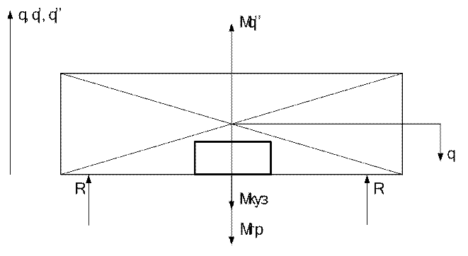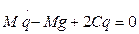 Математическая модель в динамике твердых тел представляет собой систему, в которую входят начальные условия и уравнение движения. Для получения уравнения движения математической модели воспользуемся принципом Д’ Аламбера. Для того чтобы записать уравнение движения согласно этому принципу необходимо составить основную систему. Для этого нужно вырезать твердое тело из системы, действие отброшенных связей заменить реакциями упругих элементов, приложить к нему все внешние силы и силы инерции (сила инерции направлена в сторону, противоположную направлению движения q) Основная система представлена на рисунке 3