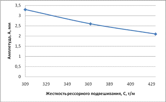 Рисунок 8 – График зависимости амплитуды колебаний от жесткости рессорного подвешивания