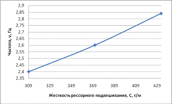 На рисунке 9 приведен график зависимости частоты колебаний от жесткости рессорного подвешивания