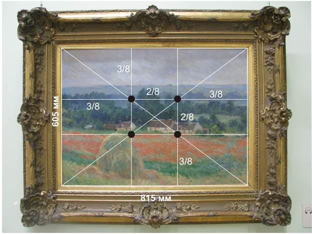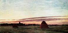 Наследником импрессионизма стал абстрактный экспрессионизм. Такие художники как Василий Кандинский (1866-1944) и Каземир Малевич (1878-1935) искали способы воплощения новых идей XX века. В. Кандинский - один из наиболее значительных русских художников ХХ века, пионер абстрактного искусства. Сияющие краски «Стогов» Моне стали для Кандинского откровением и во многом определили его отношение к искусству, поскольку Моне наглядно доказал, что живопись может обойтись без сюжета. Кандинского подтолкнули учиться живописи два художественных впечатления: посещение крестьянской избы в Вологодской губернии, когда он почувствовал, как «входит» в живопись, и картина Моне «Стог сена», глядя на которую, он понял, что в ней «нет предмета». В своих воспоминаниях Кандинский писал, как поразила его «…мощная палитра, о которой я даже не подозревал и, которая была недоступна мне до поры, все здесь было выше моих самых смелых мечтаний… невольно сюжет, бывший неотъемлемой частью картины, стал чем-то незначительным»[31]. Первые работы Каземира Малевича написаны в стиле импрессионизма. В России влияние импрессионизма испытали также К. Коровин (1861-1939), наиболее близкий по своей эстетике к импрессионистам, ранний В. Серов (1865-1911), а так же — И. Грабарь (1871-1960). ЗАКЛЮЧЕНИЕ Картина Клода Моне «Стог сена в Живерни» подчинена известным ранее общим законам и правилам: чаще всего используемый четырехугольный формат, близкий к золотому прямоугольнику; применяется световая и тональная перспективы, воздушная перспективы (три плана построения пейзажа); косая перспектива и закон линейной перспективы; цветовые планы; подчинена законам ньютоновской цветовой системы, первому закону оптического смешения, неполному оптическому смешение цветов и др. Это относится к формату, колориту, композиции и пространственному построению картины. Одновременно картина написана по новым правилам, новой техникой - ей присущи импрессионистическое видение и методы. Это относится к колориту, свету и светотени, рисунку, ритму, временной концепции. На картине «Стог сена в Живерни» запечатлена «мгновенность» - мы видим состояние природы в данный день и час, момент смены погоды. Можно заявить, что изображен летний день, около 11 ч, воздух влажный после дождя, тучи разгоняются ветром, небо проясняется, вот-вот появиться солнце. Вокруг простор, легкость, свежесть, красота - единство и целостность изображения. Эмоциональный тон – радостный, светлый, но с оттенком грусти. Глядя на картину, возникает ощущение гармонии. Эрмитажная картина «Стог сена в Живерни» своим построением, в частности, цветовым и световым построением, не только отражает общие закономерности природы, но и дает толчок к пониманию глубокой сути многих природных явлений, а именно: каким путем, например, сама природа достигает световой и цветовой гармонии. Возможны перспективы дальнейшего исследования эрмитажной картины Клода Моне «Стог сена в Живерни». При композиционном анализе данной картины можно использовать композиционный принцип доминанты. Гипотеза - стог и поле маков являются доминантами в композиционной структуре картины «Стог сена в Живерни». Существует цветовая доминанта в картине «Стог сена в Живерни». СПИСОК ЛИТЕРАТУРЫ 1. Алексеев С. О цвете и красках, М., 1962 2. Алпатов М.В. Композиция в живописи. М., 1970 3. Альберт Костеневи