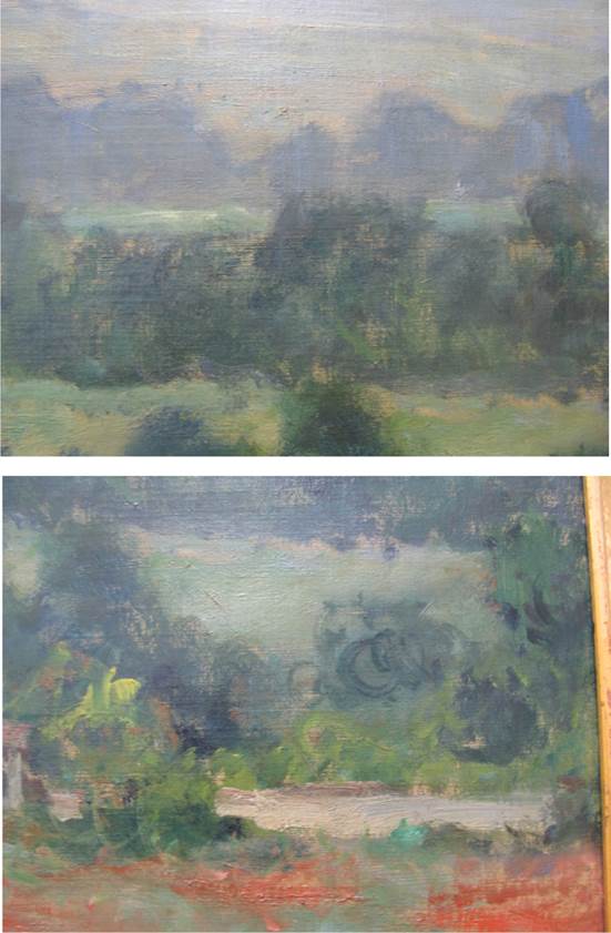 [28] Живописцы позднего Ренессанса передний план обычно писали в буроватых тонах, средний – в зеленых, а дальний план – в голубых. Виппер Б.Р. Введение в историческое изучение истории искусства. Раздел «Живопись». — М., 1985.