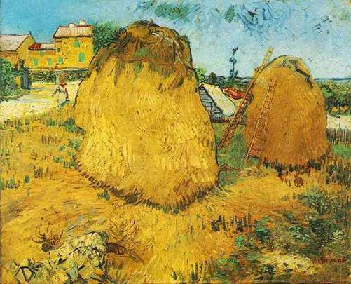 Винсент Ван Гог. Стога в Провансе, Арль, июнь, 1888. Винсент Ван Гог. Пшеничное поле со стогом пшеницы или сена, Овер-сюр-Уаз, 1890