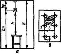 Для обеспечения искусственного освещения необходимо выбрать тип источника света (лампа накаливания или газоразрядная), тип светильника, схему расположения светильников и выполнить светотехнический расчет [33]. Расположение светильников определяет экономичность, качество освещения и удобство эксплуатации. Основные схемы размещения светильников приведены на рис. 4.7. 4.8