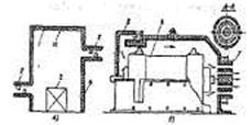 а - схема кожуха; б - конструкция кожуха для электродвигателя (1 - звукопоглощающий материал; 8 - глушитель шума; 3 - источник шума; 4 - стенка; 5 -электродвигатель; 6,7 - каналы с глушителями для входа и выхода воздуха) Рис. 6.11. Звукоизолирующий кожух Ограждающие конструкции подразделяют на однослойные, колеблющиеся как, одно целое, и многослойные (несколько слоев, не имеющих жесткой связи), способные колебаться с разными для каждого слоя амплитудами. Звукоизолирующая способность ограждения (стены, перегородки) при проникновении шума из одного шумного помещения в другое определяется из выражения Rozp= L-Ln- lOlgB + 101^ (6.26) где L — октавные уровни звукового давления в шумном помещении, дБ; Ln - допустимые октавные уровни звукового давления, дБ; определяются по табл. 6.1; lg - десятичный логарифм; В — постоянная помещения, определяемая по табл. 6.4 и 6.5 в зависимости объема помещения; Sогр - площадь ограждающей конструкции, разделяющей помещением. При проникновении шума из помещения на прилегающую территорию Звукоизолирующая способность ограждения определяется по формуле RO2p=L-Ln + 101gSO2p-101gr- 11, (6.27) где r - расстояние от ограждающей конструкции до расчетной точки, м. По вычисленным значениям требуемой звукоизолирующей способности ограждения Rогр подбирается материал таким образом, чтобы реальные значения Rогр для каждой октавной полосы частот были не ниже, чем расчетные значения Звукоизолирующая способность однослойной преграды на частоте 500 Гц может быть определена из выражений (дБ) - при поверхностной плотности ограждения до 200 кг/м: Rozp = 13,5 lg 80+13; (6.28) - при поверхностной плотности ограждения более 200 кг/м: Rosp = 23lgQ-9, (6.29) где Q - масса 1 м ограждения, кг (табл. 6.8), Таблица 6.8 - Масса конструкций и материалов