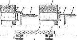а, б - активная виброизоляция; в - пассивная виброизоляция; l- изделие; 2 - подвижная рама виброплощадки;. 3 - рабочий настил; 4 - основание, 5 - амортизатор; 6 - основание амортизатора Рис. 7.2. Схемы виброизоляции Активная виброизоляция уменьшает передачу вибрации от источников на основание (фундамент). Пассивная виброизоляция (рис. 7.3) защищает рабочие места от вибрации (защита от вибрации на пути распространения) [33]. Основная цель виброизоляции сводится к уменьшению амплитуды колебаний. Оборудование; создающее значительные нагрузки (компрессоры, вентиляторы высокого давления и др.), рекомендуют устанавливать на отдельные фундаменты, не связанные с каркасом здания. Для этой цели выполняют фундаменты двух типов - с акустическим швом и акустическим разрывом (рис. 7.4).