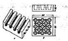 1 - битуминизированная прокладка из войлока; 2 - фундамент под машину; 3 - акустический шов; 4 - фундамент Рис. 7.4. Виброизолирующий фундамент Установка машин на самостоятельные фундаменты получила название виброгашение. Проектирование фундаментов производится по СНиП 2.2.05. Чтобы не допустить передачи вибраций от одной машины к другой через грунт, применяют устройство акустических швов с засыпкой вибрирующего фундамента, например, асбестовой крошкой, которая препятствует распространению колебательных движений за пределы засыпки. Для той же цели предназначены акустические щели шириной 10 см, в которых изолирующей прослойкой является воздух. Виброизоляторы устраняют жесткую связь между источником вибрации и его основанием при помощи амортизаторов, выполненных в виде стальных пружин или упругих прокладок (резины, пеноэласта и др.). Для снижения низкочастотной вибрации до 16 Гц применяют стальные пружинные виброизоляторы, так как в силу малых внутренних потерь они способны пропускать колебания высоких частот. Упругие виброизоляторы наиболее эффективны для машин и механизмов, число оборотов рабочих органов которых более 1800 об/мин. Эффективность упругих виброизоляторов определяется статическим прогибом под весом действующей на них нагрузки. Чем больше прогиб, тем выше виброизоляция. Применяя амортизаторы из резины, необходимо учитывать ее малую сжимаемость, обусловленную боковыми деформациями. В связи с этим резиновые амортизаторы должны иметь форму, допускающую свободное растягивание резины в стороны, например форму ребристых или дырчатых плит иди прокладок (рис 7.5)