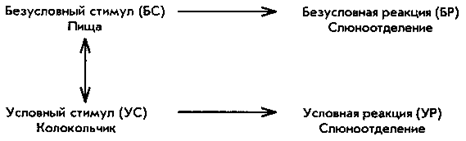 Рис. 7-1. Парадигма классического обусловливания по Павлову.