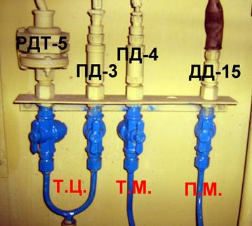 РДТ-5 Реле контроля тормозов для гребнесмазывателя. Контролирует давление в тормозных цилиндрах. При наличии давления в Т.Ц. более 1,3 кг/см2 датчик срабатывает и подает сигнал в МСУ на отмену смазки гребней первой, по ходу движения тепловоза, колесной пары. ПД-3 Преобразователь давления. При вводе в «КЛУБ» команды К-81 будет отображаться давление воздуха в тормозных цилиндрах, по средствам этого датчика. ПД-4 Преобразователь давления. При вводе в «КЛУБ» команды К-80 будет отображатся давление в тормозной магистрали, по средствам этого датчика. Помимо этих датчиков у «КЛУБа» имеются еще преобразователи давления: ПД-1 и ПД-2 (На рисунке не указаны). Эти датчики включены в объем уравнительного резервуара и показывают давление в УР на «КЛУБе», соответственно первой и второй кабине управления. ДД-15 Датчик давления воздуха в главных резервуарах. Его контакты включены в схему тяги, и при давлении в ГР менее 6 кг/см2 разбирают тягу и на дисплее высвечивается соответствующее сообщение. При неисправности этого датчика, отвернуть от него фишку, и поставить в ней перемычку с 1 на 3 выход.
