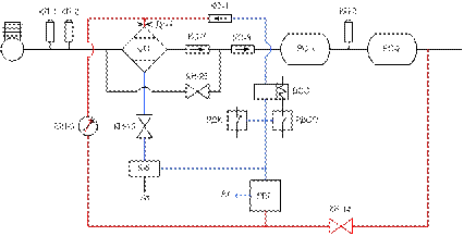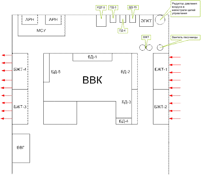 На схемах красным цветом указаны трубопроводы с сжатым воздухом, а синим цветом трубопроводы связанные с атмосферой.