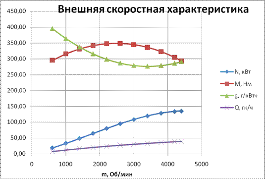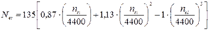 Внешняя скоростная характеристика представляет собой зависимость эффективной мощности Зависимость эффективной мощности от функции числа оборотов коленчатого вала определяется по эмпирической формуле: