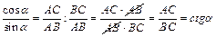 Дадим определение тригонометрическим функциям острого угла прямоугольного треугольника (рисунок 1): · · Косинусом острого угла прямоугольного треугольника ABC называется отношение прилежащего катета к гипотенузе: · Тангенсом острого угла прямоугольного треугольника ABC называется отношение противолежащего катета к прилежащему: · Котангенсом острого угла прямоугольного треугольника ABC называется отношение прилежащего катета к противолежащему: Замечание 1: Тригонометрические функции острого угла определяются исключительно градусной мерой самого угла и не зависят от «надетого» на него треугольника: если рассмотреть два прямоугольных треугольника APQ и ABC, «надетых» на острый угол α (рисунок 1), то Δ ABC ~ Δ AQP по двум углам, а следовательно, их стороны пропорциональны. Тогда Найдем по рисунку 1 тригонометрические функции острого угла (90° ‑ α):