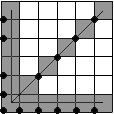Поскольку экран растрового дисплея с электронно-лучевой трубкой (ЭЛТ) можно рассматривать как матрицу дискретных элементов (пикселов), каждый из которых может быть подсвечен, нельзя непосредственно провести отрезок из одной точки в другую. Процесс определения пикселов, наилучшим образом аппроксимирующих заданный отрезок, называется разложением в растр. В сочетании с процессом построчной визуализации изображения он известен как преобразование растровой развертки. Для горизонтальных, вертикальных и наклоненных под углом 45°. отрезков выбор растровых элементов очевиден. При любой другой ориентации выбрать нужные пикселы труднее, что показано на рис.1.