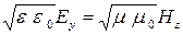 128 (2). Плоская монохроматическая электромагнитная волна распространяется в вакууме вдоль оси . Частота колебаний вектора напряженности электрического поля – 4,5·1011 Гц. Найти: 1) длину волны в вакууме; 2) длину волны в однородной изотропной непроводящей немагнитной среде с диэлектрической проницаемостью, равной 3, и записать уравнение этой волны в указанной среде для вектора напряженности электрического поля, подставив численные значения всех входящих в уравнение величин. Амплитуда колебаний вектора напряженности магнитного поля в среде равна 5 мА/м. Начальную фазу принять равной нулю.