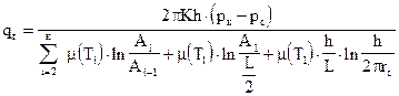 Подставив (5.3) - (5.5) в (5.2) и учитывая внутреннее сопротивление горизонтальной скважины, приходим к окончательному выражению