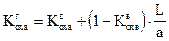 Пятиточечный элемент с горизонтальными добывающими скважинами 1. По формуле (1.5), полагая 2. Расчетный дебит корректируется с тем же коэффициентом a, что и для вертикальной скважины, т. е. полагаем qг = a×qрасч. 3. Учитывая, что в данном случае соотношение добывающих и нагнетательных скважин равно 2: 1, для соблюдения баланса отбора и закачки темп нагнетания должен составить qн = 2×qг. 4. Определяем коэффициент охвата. Ясно, что при L = а охват вытеснением в элементе разработки был бы равен 1. С другой стороны, известен охват Кохв для обычной пятиточечной схемы с вертикальными скважинами. Для схемы с горизонтальными скважинами с длиной стволов L < а коэффициент охвата будет иметь некоторое промежуточное значение между Кохви 1. Применяя принцип линейной зависимости, охват элемента при разработке с применением горизонтальных скважин можно представить формулой