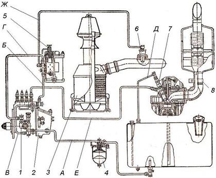 Рис. 1. Компоновочная схема системы питания топливом дизельного ДВС