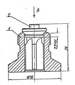 Технические требования: 1. В собранном клапане замена деталей не допускается. 2. Клапан, выдвинутый из корпуса на 1/3 длины сопрягаемой поверхности, должен под действием собственной массы свободно перемещаться в корпусе при любом повороте вокруг своей оси относительно корпуса, установленного вертикально. 3. Зазор по цилиндрической сопрягающейся части нагнетательного клапана должен быть от 0,01 до 0,015 мм. Проверить по диаметру разгрузочного пояска. 4. Плотность посадки клапана в корпусе по периметру разгрузочного пояска (зазор) проверяется замером расхода воздуха на пневматическом приборе с ротаметром. При этом подъем клапана над корпусом должен быть 0,5 мм. 5. Проверка запорного конуса нагнетательного клапана на герметичность должна производиться в трех положениях конуса относительно корпуса опрессовкой воздухом со стороны «А» под давлением 0,4-0,7 МПа в течение 10 секунд в каждом положении. При этом пропуск воздуха через запорный конус не допускается. Рис.3.9. Клапан нагнетательный: 1 – корпус; 2 – клапан.