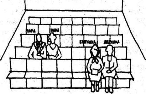 4. А теперь размести несколько человек и себя вокруг этого стола. Обозначь их родственные отношения (папа, мама, брат, сестра) или (друг, товарищ, одноклассник).