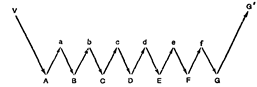 Всего яснее это можно видеть на рис. 3. Пусть.4, В, С, D Е, F, G изображают установившуюся в силу привыч- ки цепь мышечных сокращений, пусть а, Ь, с, d, e, f, О означают ощуще- ния, вызываемые этими последова- тельными сокра- щениями. Эти ощущения обык- новенно локали- зуются в движущихся частях, но иногда они возникают при посредстве движений уха или глаза. При помощи их, и притом при помощи только их одних, мы узнаем, было сокращение мышц или нет. При усвоении ряда Л, В, С, D, Е, F, G каждое из этих ощущений служит для осознания объектом особого акта внимания. Преж- де чем перейти от одного звена в цепи движений к дру- гому, мы при помощи ощущений проверяем, правильно ли произведено предшествующее движение.