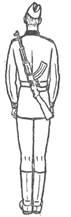 Рис. 16. Строевая стойка с оружием: а — вид спереди, б — вид сбоку, в — вид сзади.