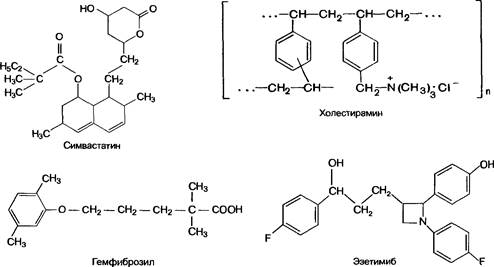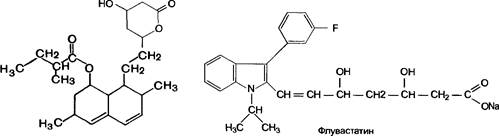 1 Пролекарства; в стенке кишки, в печени и в небольшой степени в плазме крови под влиянием карбоксиэстераз из них образуются соответствующие Р-гидроксикислоты. 2 Определяли у животных, так как у людей эти вешества быстро гидроксилируются. 1 В скобках указан % флувастатина, метаболизируемый определенным изоэнзимом. ни, холестазе, миопатии, при повышенной чувствительности к нему. Не рекомендуется давать препарат детям. Другие статины по фармакодинамике аналогичны ловастатину. Однако имеются фармакокинетические различия (см. табл. 22.3). Так, максимальная концентрация в плазме крови флувастатина (лескол) и правастатина (липостат) накапливается быстрее, чем ловастатина и симвастатина (зокор). Очень важной характеристикой является степень захвата статинов печенью при первом пассаже через нее (см. табл. 22.3). В данном случае это не следует оценивать как потерю вещества, так как именно в гепатоцитах данные вещества ингибируют биосинтез холестерина. Биодоступность является лишь дополнительной характеристикой этого процесса. Ловастатин и симвастатин, являясь высоколипофильными соединениями, хорошо проникают через гематоэнцефалический барьер и плаценту. Флувастатин и правастатин практически не проходят через эти барьеры (хотя флу-вастатин в 40 раз более липофилен, чем правастатин). Пути метаболизма для разных препаратов неодинаковы, и это имеет существенное практическое значение. Большинство статинов метаболизируется за счет ферментной системы цитохрома Р-450 как в печени, так и в стенке кишечника. При этом могут участвовать разные изоэнзимы Р-450 (см. табл. 22.3). Для ловастина и симвастатина это CYP ЗА4, а для флувастатина — в основном CYP 2С9, но также CYP ЗА4 и CYP 2С8. Правастатин претерпевает другой путь биотрансформации. При участии сульфотрансферазы в печени происходит цитозольное сульфатиро-вание правастатина. Эти данные важны в связи с возможностью развития побоч 510; ФАРМАКОЛОГИЯ < Частная фармакология ных эффектов, особенно таких серьезных, как миопатия, которая в отдельных случаях может приводить к рабдомиолизу, иногда со смертельным исходом. Частота таких осложнений зависит от концентрации статинов в крови. Поэтому если одновременно применяют вешества, блокирующие ферменты, которые метаболи-зируют определенные статины, риск миопатий существенно возрастает. Известны многие ингибиторы CYP ЗА4, играющего основную роль в метаболизме ряда статинов (ловастатина, симвастатина, аторвастатина и др.). К таким ингибиторам относятся иммунодепрессант циклоспорин А, антибиотик эритромицин, противогрибковое средство итраконазол. ингибиторы протеаз ретровирусов, например ритонавир и др. Естественно, что сочетание указанных статинов с такими препаратами нецелесообразно. Флувастатин в этом отношении более безопасен, так как в его биотрансформации основную роль играет другой изоэнзим -CYP 2С9. Еще более благоприятна ситуация для правастатина, основной путь метаболизма которого отличается от других статинов. Вместе с тем следует иметь в виду, что и другие гиполипидемические вещества также могут вызывать миопатию, например фибраты (гемфиброзил и др.), кислота никотиновая. Поэтому сочетание с ними статинов, как правило, нежелательно или требует тщательного наблюдения за пациентами. Химические структуры некоторых гиполипидемических средств