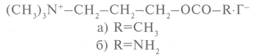 ацетилхолину. Следует учитывать, что в очень высоких (нефизиологических) концентрациях ацетилхолин может вызывать угнетение холинергической передачи. В медицинской практике при глаукоме изредка применяют аналог ацетилхолина карбахолин (см. структуру: R=NH2, Г=Сl). Карбахолин отличается от ацетилхолина стойкостью. Он не гидролизуется ацетилхолинэстеразой и поэтому действует довольно продолжительно (в течение 1-1,5 ч). Считают, что карбахолин не только оказывает прямое холиномиметическое влияние, но и стимулирует высвобождение ацетилхолина из пресинаптических окончаний. Спектр фармакологического действия карбахолина такой же, как и ацетилхолина. Определяется он влиянием на м- и н-холинорецепторы.
