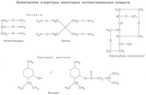 Примечание. Прочие антиангинальные средства приведены в соответствующих разделах (β-адреноблокаторы, противоаритмические средства, блокаторы Са2+-каналов).