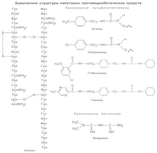 Препараты инсулина пролонгированного действия медленно всасываются из места введения. Их однократная инъекция обеспечивает длительный эффект, что является несомненным достоинством таких препаратов. Однако при развитии под влиянием пролонгированных препаратов выраженной гипогликемии вывести из нее больного труднее, чем при аналогичной по степени, но вызванной препаратами инсулина короткого действия. Действие пролонгированных инсулинов развивается медленно, поэтому для купирования диабетической комы они непригодны. Наличие в ряде препаратов белка протамина объясняет довольно частое возникновение аллергических реакций. Вводят препараты инсулина пролонгированного действия подкожно или внутримышечно. Назначают такие препараты при средней и тяжелой формах сахарного диабета. Препараты инсулина не лишены ряда недостатков. Так, инъекции инсулина болезненны. Даже при соблюдении правил асептики на месте введения препарата могут возникать воспалительные реакции (инфильтраты и др.). Кроме того, следует учитывать, что чувствительность к инсулину варьирует в довольно широких пределах. У одних больных отмечается очень низкая чувствительность к нему, у других, наоборот, — чрезмерно высокая. Резистентность предположительно связана с уменьшением числа рецепторов, снижением их аффинитета и другими причинами. Выработка к инсулину антител может быть причиной снижения и утраты его эффективности. Препараты инсулина могут вызывать аллергические реакции Последние менее выражены у препаратов инсулина человека. Большой интерес представляют гипогликемические средства, эффективные при приеме внутрь. Получены они синтетическим путем и относятся к 2 группам химических соединений. Date: 2015-07-01; view: 861; Нарушение авторских прав |