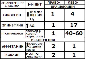 Таблица 4.1. Зависимость действия лекарственных средств от стереоизомерии