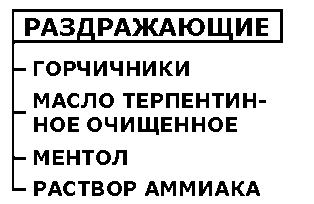 Лекарственные средства, ↑ чувствительность нервных окончаний Раздражающие Определение. Это лекарственные средства, возбуждающие окончания чувствительных нервов кожи и слизистых, вызывая местные и рефлекторные эффекты: ↓ боли, ↑ кровоснабжения тканей. Классификация (рис. 5.8)