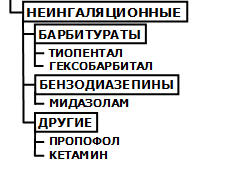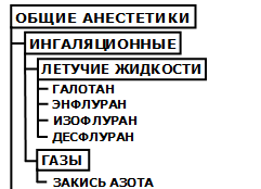 Рисунок 10.1. Группы нейротропных лекарственных средств центрального действия Общая анестезия Определение. Это обратимое торможение ЦНС (выключение сознания; угнетение: чувствительности, рефлекторных реакций, тонуса скелетных мышц). Общие анестетики (рис. 10.2)