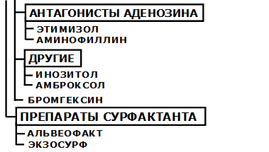 Рисунок 21.9. Лекарственные средства, применяемые при синдроме дыхательных расстройств у новорожденных
