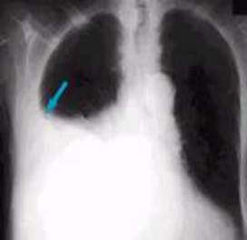 $$$001 63 жасар әйелде кеуде клеткасы ағзаларының рентгенограммаларында сол жағында 5 қабырғаның алдыңғы кесіндісінде ашық түсті, тегіс(2 мм) сызық көрінеді, ол қабырғаны көлденеңінен кесіп өтеді, сызыққа дейінгі қабырғаның проксималды және дисталды кесінділері бір деңгейде орналасқан (ығысуы 3 мм дейін). Ауру сезімі мен дем алуының қиындағанына шағымданады, жарақат болмаған, саяжайда көп еңбек еткенін айтады. Осы рентгенологиялық сурет қай патологияға сай келеді: A) Лоозерлік қайта құрылу аймағы B) Қабырғасының сынуы C) Өкпенің тамырлық суретінің қабаттасуы D) Артефакт E) Патологиялық сынық {Дұрыс жауап}= B {Күрделі}= 2 {Кітап}= (Лучевая диагностика. Под редакцией Г. Е. Труфанова. 2007 г) {Курс}= 7 {Семестр}= 14