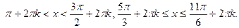 При решении неравенств с тригонометрическими функциями следует использовать периодичность этих функций: следует сначала решить это неравенство на одном периоде, например для Тригонометрические неравенства можно решать, используя графики тригонометрических функций или числовую окружность. Выписываем ответ для одного периода, а затем к обеим частям полученного неравенства прибавляем