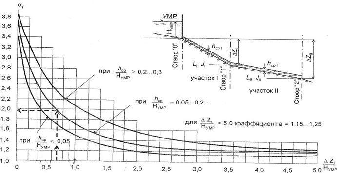Где hсрI -средняя бытовая глубина водотока на участке - Значение перепада высот дна водотока в первом створе относительно дна русла в створе ВГТС (створ «0»):
