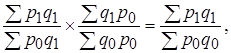 Произведение индекса цен на индекс физического объема товарооборота или продукции дает индекс физического объема товарооборота в фактических ценах, или индекс стоимости продукции. Индекс себестоимости промышленной продукции связан с индексом физического объема продукции по себестоимости, образуя следующую индексную систему: