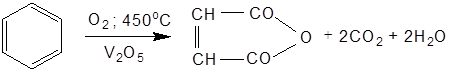 Окиснення аренів Незаміщені ароматичні вуглеводні дуже стійкі щодо різних окисників (перманганат калію, триоксид хрому, нітратна кислота), але кисень повітря в присутності V2O5 окиснює бензол в малеїновий ангідрид з гарним виходом: