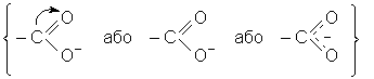 Такий запис неточний, бо в утвореному карбоксиланiонi негативний заряд належить в однаковiй мiрi обом атомам кисню, i його структура записується так:
