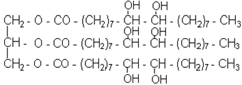 У пробiрку вносять 2 краплi рослинної олії, 2 краплi розчину карбонату натрiю i 2 краплi водного розчину перманганату калiю. Сумiш струшують у пробiрцi. Малинове забарвлення перманганату калiю зникає - це вказує на окислення глiцеридiв ненасичених вищих кислот, якi входять до складу олії. Хiмiзм процесу: